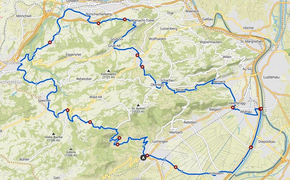 Geniesse die ersten Meter des Warm-ups auf dem Rheinradweg, denn danach ist der Name Programm. In einem ständigen Auf und Ab erkundest du das wunderbare Appenzeller Vorderland mit Blick über den herrschaftlichen Bodensee. Der Ort Fünfländerblick gibt einen Eindruck der Weitsicht, die dich auf diese Tour erwartet. Nicht umsonst hat das Tour Magaz in das Appenzeller Vorderland bereits vor Jahren zur «Toskana der Nordalpen» benannt